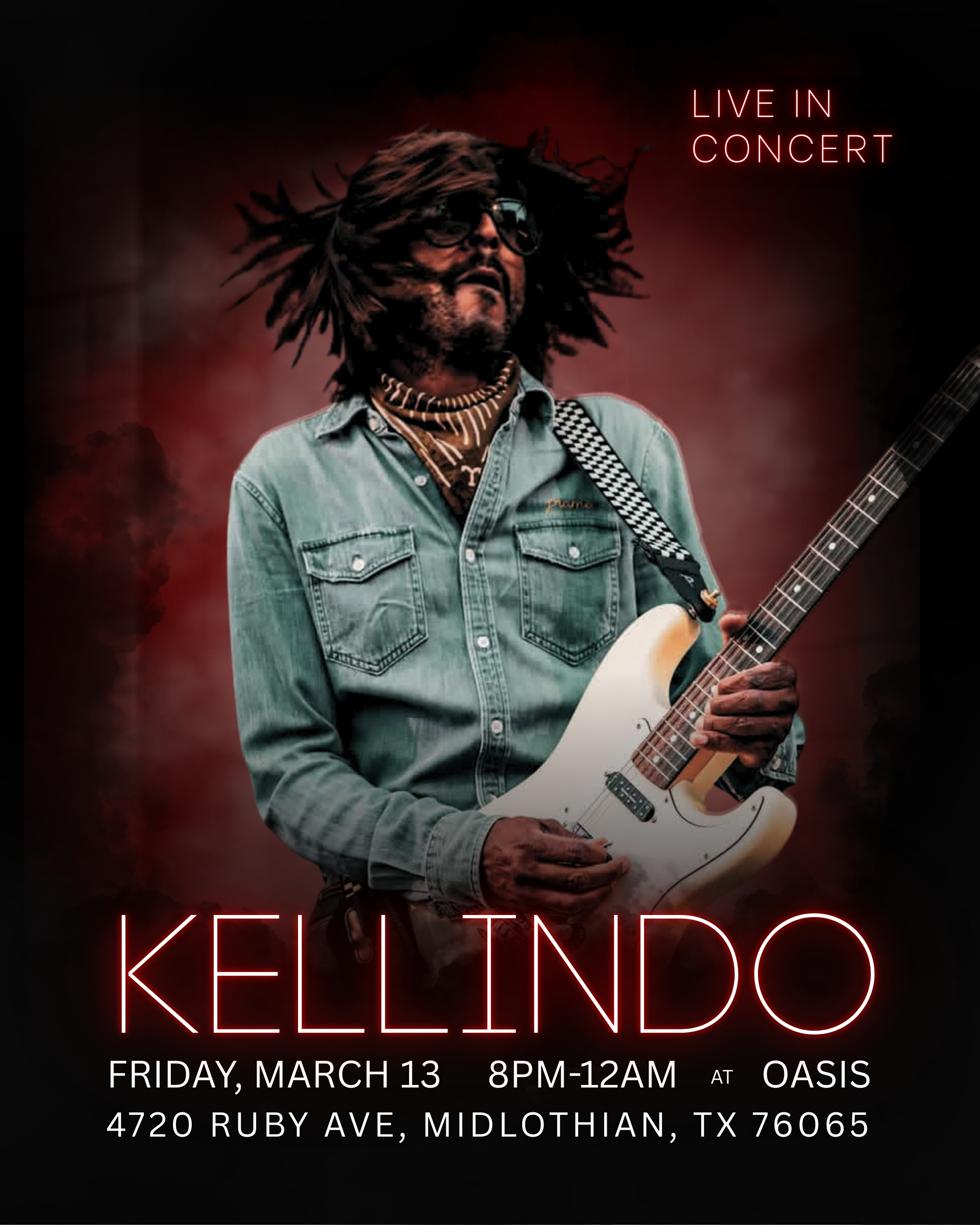 Kellindo’s trio, based in Dallas, is an eclectic blend of blues, rock, and funk. Featuring Patrick Smith on bass and Joshua Sloan on drums. Kellindo's band has undoubtedly left a trail of awe and wonder as they traversed through the Southern states, delivering one mind-blowing performance after another. Their music possesses an irresistible allure, woven with such captivating melodies that even the most reluctant souls are compelled to dance and sing along. They have effortlessly captured the hearts of countless fans and impressed club owners with their undeniable talent. Currently, their focus lies in crafting their long-awaited debut EP, which is set to redefine the music industry with its unparalleled blend of infectious hooks, powerful blues guitar riffs, and intoxicating drum grooves. This groundbreaking combination promises to leave an indelible mark on the musical landscape, elevating Kellindo's band to new heights of artistic brilliance.